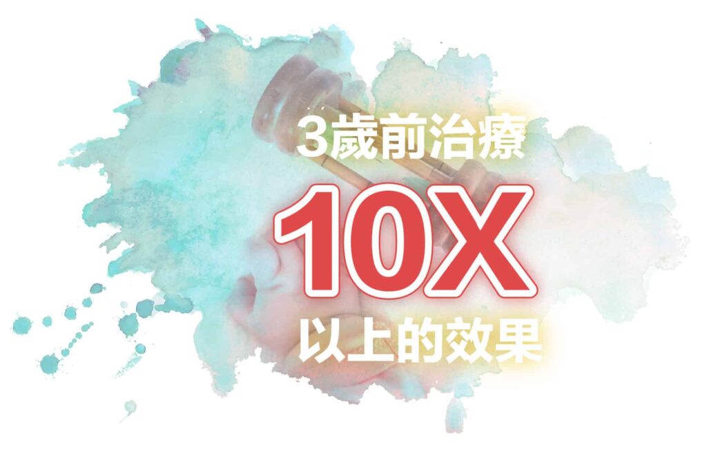 3歲前是發展遲緩的黃金治療時期,由於幼兒腦部發展生長性較好,可塑性較佳。研究指出3歲前治療可有10倍以上的效果。因此提早評估和治療可以最大程度地減少嬰孩已有的發育障礙,以及有助避免錯過醫治嬰孩的黃金期。